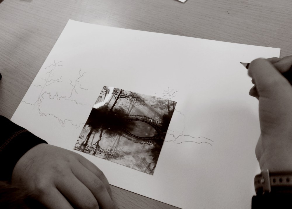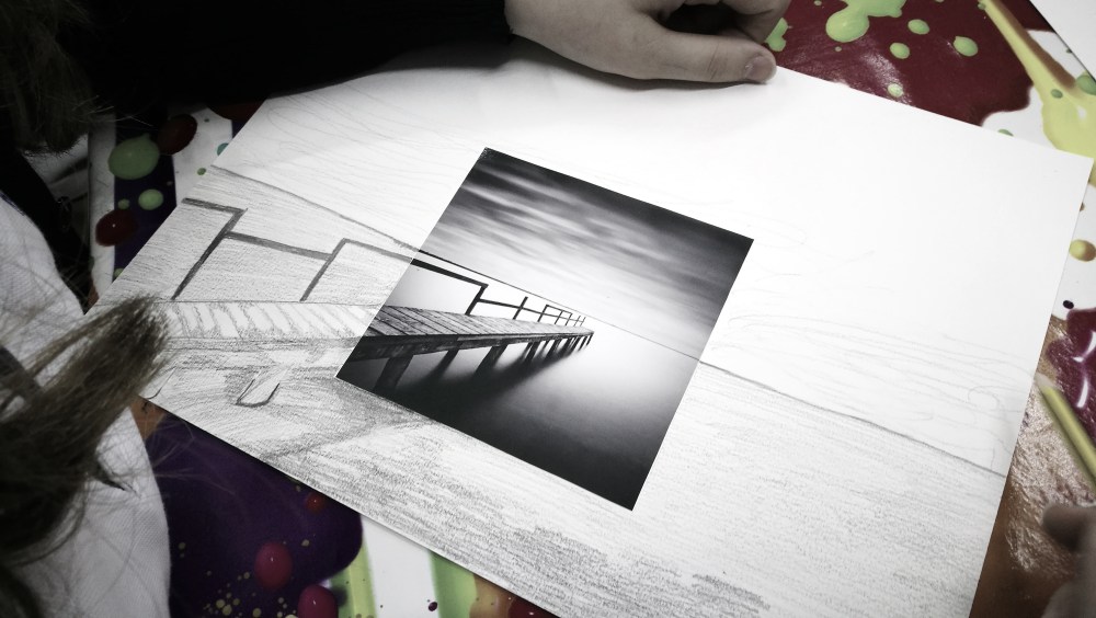 Dibujo a lápiz; cómo representar a lápiz: objetos en primer plano y en planos sucesivos (cercano-detalle-intensidad y lejano-claro-difuminado), luces y sombras, representación de las sombras (presión de lápiz-tramas superpuestas)…