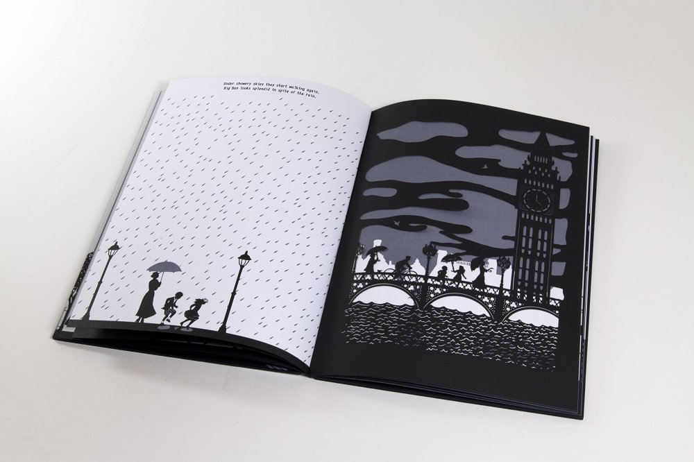La experimentación con la luz continúa con los más pequeños con el teatro de sombras a partir del libro: Un paseo con Mary Poppins , de P. Lyndon Travers y H. Druvert, Ed. Edelvives: un libro de troqueles que permite jugar con las sombras e inventar nuevas historias.