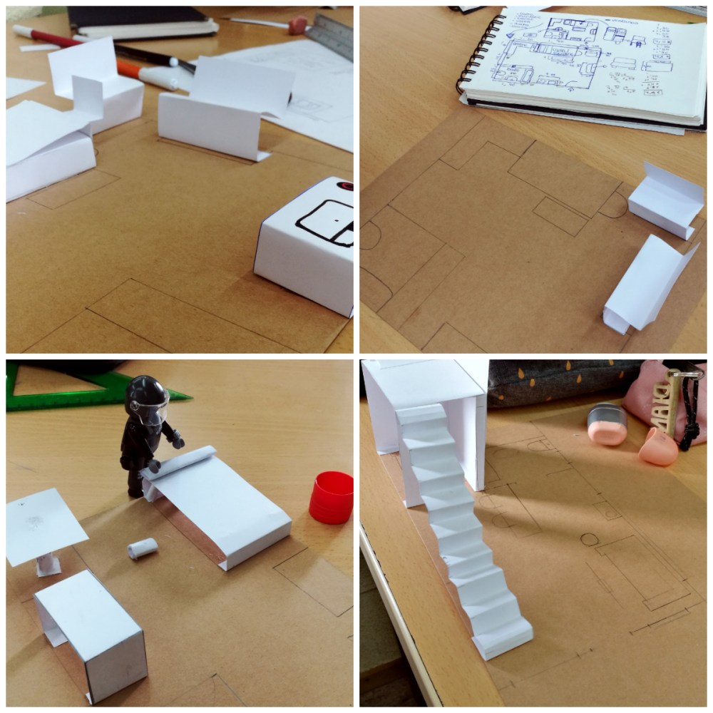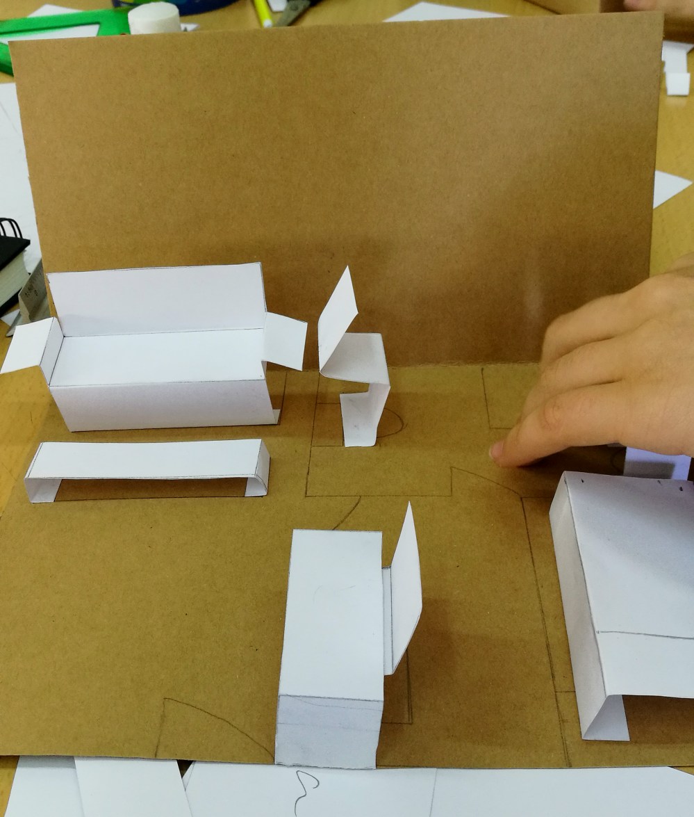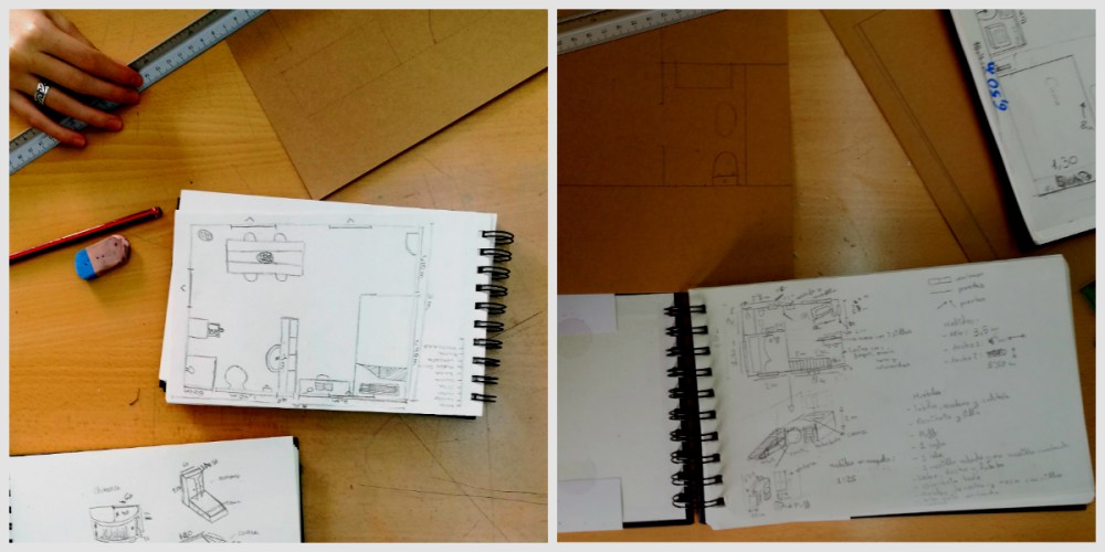 Se propone la realización de una maqueta a escala para una vivienda mínima. Reflexión acerca de las medidas del espacio-estancia mínima, diseño de mobiliario transformable, separación virtual de usos, circulaciones y vistas…