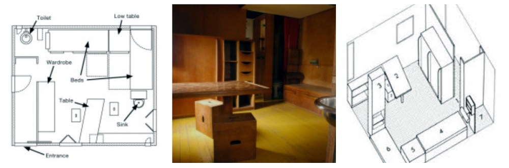 _Referencias: Le petit cabanon _ Le Corbusier: un volumen de 3,66 x 3,66 x 2,66 m (medidas relacionadas con el Modulor) que alberga las funciones de una vivienda.